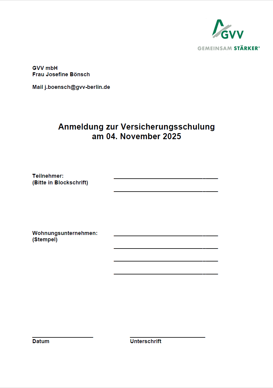 Bitte senden Sie das ausgefüllte Anmeldeformular bis spätestens 17. Oktober 2025 per Mail an Frau Josefine Bönsch (j.boensch∂gvv-berlin.de) zurück.